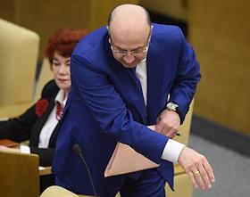 Министр строительства и жилищно-коммунального хозяйства России Михаил Мень на пленарном заседании Государственной думы России.
