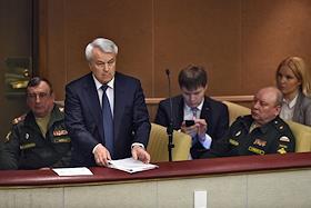 Статс-секретарь - заместитель министра обороны России Николай Панков (справа) на пленарном заседании Государственной думы России.