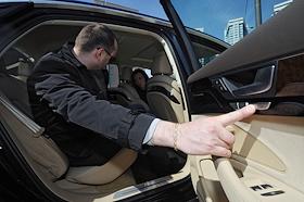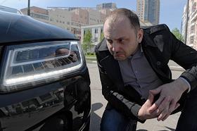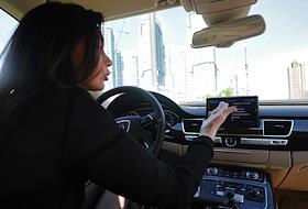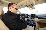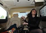 Корреспондент издательского дома (ИД) "Коммерсантъ" Евгения Милова во время проведения тест-драйва автомобиля Audi A8.