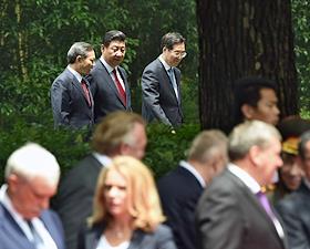 Визит Президента России Владимира Путина в Китай. Слева направо: статс-секретарь-заместитель министра образования и науки России Наталья Третьяк, первый заместитель президента - председателя правления банка ВТБ Борис Титов, министр регионального развития России Игорь Слюняев, министр энергетики России Александр Новак и председатель КНР Си Цзиньпин во время официальной церемонии встречи.