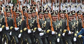 Визит президента России Владимира Путина в Китай. Рота почетного караула китайской народной армии во время церемонии официальной встречи в государственной резиденции "Сицзяо" в Шанхае.