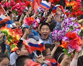 Визит президента России Владимира Путина в Китай. Китайские дети во время церемонии официальной встречи в государственной резиденции "Сицзяо" в Шанхае.