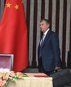Визит президента России Владимира Путина в Китай. Президент государственной нефтяной компании "Роснефть" Игорь Сечин (в центре) во время встречи с представителями российских и китайских деловых кругов в государственной резиденции "Сицзяо" в Шанхае.