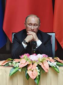 Визит президента России Владимира Путина в Китай. Президент России Владимир Путин во время встречи с представителями российских и китайских деловых кругов в государственной резиденции "Сицзяо" в Шанхае.