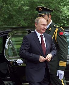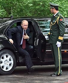Визит президента России Владимира Путина в Китай. Президент России Владимир Путин выходит из автомобиля перед началом церемонии официальной встречи в государственной резиденции "Сицзяо" в Шанхае.