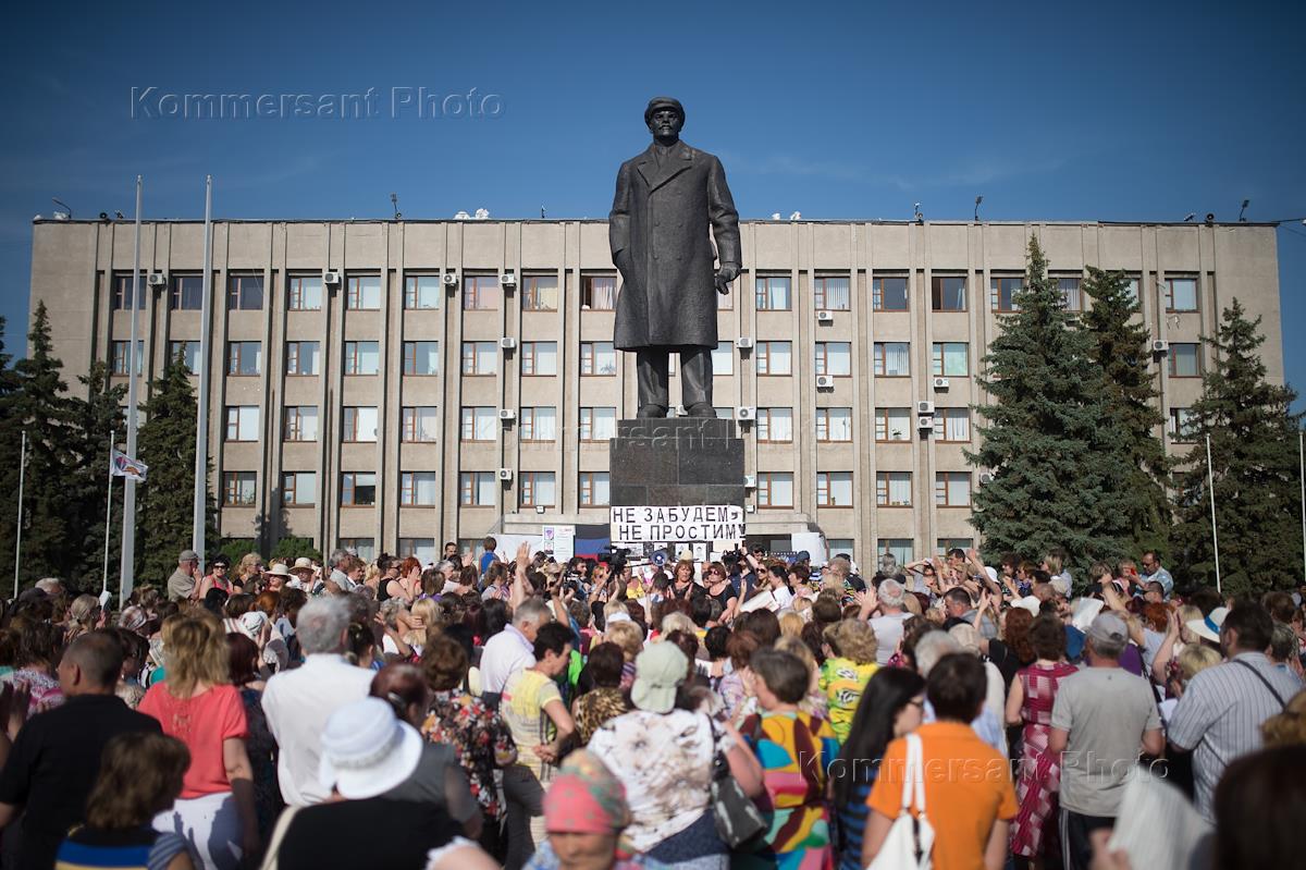 Митинг "Жители Славянска против войны" прошел у здания городской администрации города.