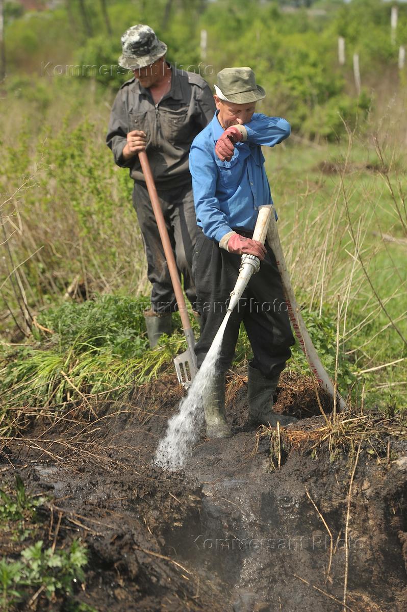 Сотрудники лесной охраны во время предупредительных противопожарных мероприятий на торфяных месторождениях (торфяниках) в Ярославской области.