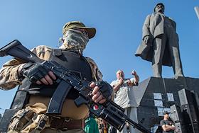Политическая ситуация на Украине. Митинг в честь соединения Луганской и Донецкой республик в государство Новороссия прошел на площади Ленина.