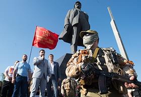 Политическая ситуация на Украине. Донецкая область. Cъезд народных представителей "Донецк 2014". Митинг в честь соединения Луганской и Донецкой республик в государство Новороссия прошел на площади Ленина.