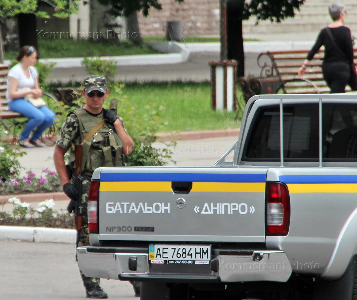 Досрочные выборы президента Украины. Донецкая область, город Красноармейск. Батальон "Днепр" охраняет окружную избирательную комиссию.