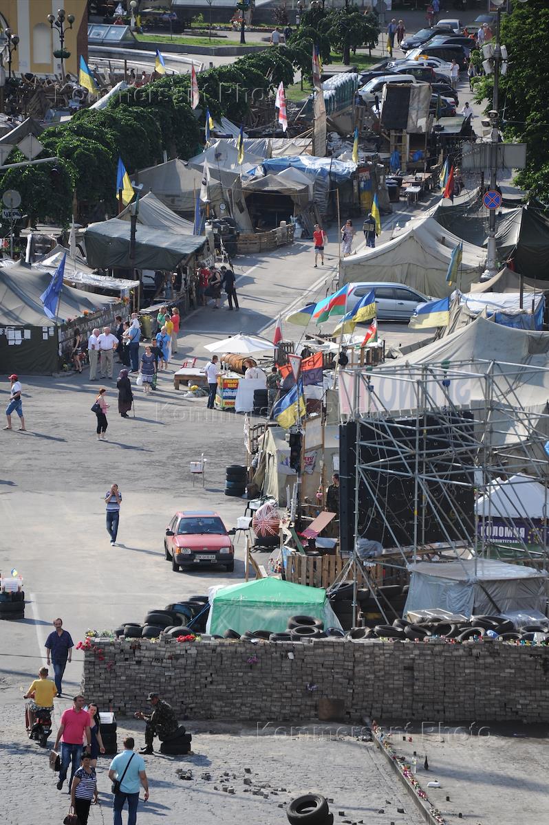Политическая ситуация на Украине. Досрочные выборы президента Украины. Палатки сторонников Евромайдана и монумент Независимости на Майдане Незалежности (площадь Независимости).