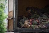 Политическая ситуация на Украине. Тела погибших ополченцев батальона "Восток" у морга Калининской больницы Донецка.