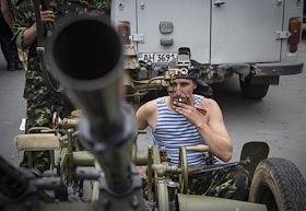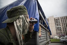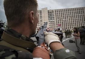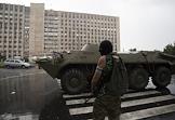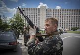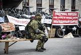 Политическая ситуация на Украине. Бойец батальона "Восток" перед зданием Донецкой областной государственной администрации.