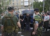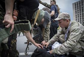Политическая ситуация на Украине. Операция по задержанию мародеров, проводимая бойцами батальона "Восток". Обыски выходящих из здания Донецкой областной государственной администрации (ОГА).