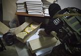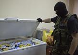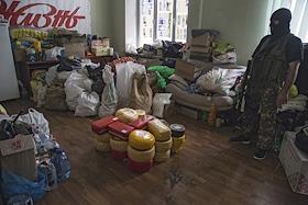 Политическая ситуация на Украине. Боец батальоа "Восток" в здании Донецкой областной государственной администрации (ОГА) во время операции по задержанию мародеров. Продукты украденные из гипермаркета "МЕТРО".