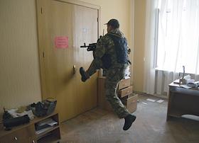 Политическая ситуация на Украине. Боец батальоа "Восток" в здании Донецкой областной государственной администрации (ОГА) во время операции по задержанию мародеров.