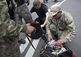 Политическая ситуация на Украине. Операция по задержанию мародеров, проводимая бойцами батальона "Восток". Очистка территории возле здания Донецкой областной государственной администрации от баррикад.