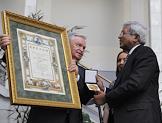 Председатель Российского детского фонда, писатель Альберт Лиханов (слева) и основатель и руководитель общественной благотворительной организации BRAC, сэр Фазле Хасан Абед (справа) на церемонии открытия Международного дня защиты детей в Большом театре.