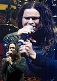Вокалист британской рок-группы Black Sabbath Оззи Осборн во время выступления на сольном концерте группы в спортивном комплексе "Олимпийский".