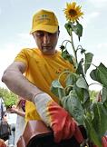 Большой общекорпоративный субботник компании "АФК "Система" прошел в Ботаническом саду РАН имени Н.В.Цицина. Президент ОАО "МТС" Андрей Дубовсков во время субботника.