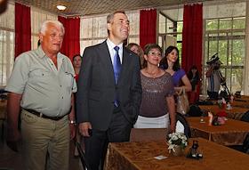 Уполномоченный при президенте России по правам ребенка Павел Астахов (второй слева) с беженцами из Украины в оздоровительном лагере "Дмитриадовский" в Неклиновском районе.