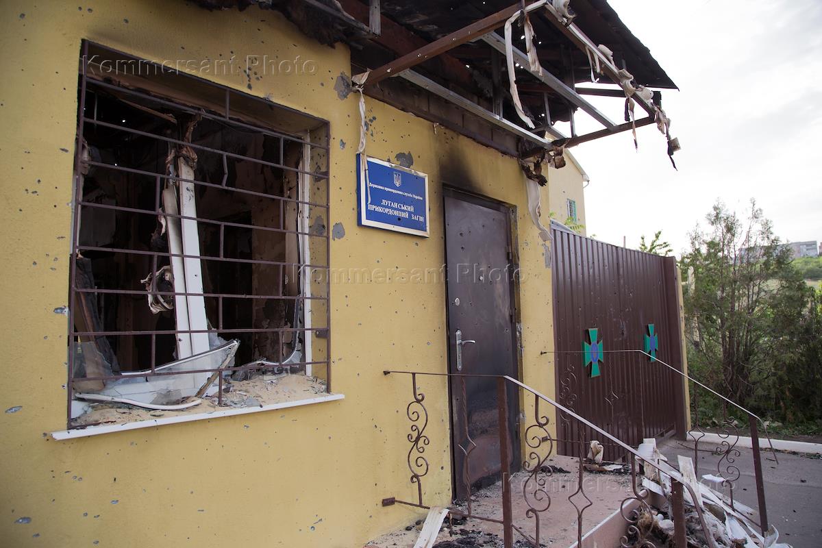 Политическая ситуация на Украине. Здание Пограничной заставы, пострадавшее в ходе боев 2 мая 2014 года.