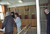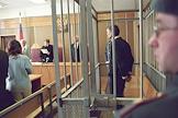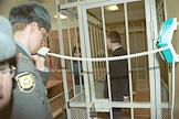 State Duma Foreign Affairs Committee Staff Manager Vladimir Trofimov (in the cage) listens to the Moscow City Court judges reading the verdict. Vladimir Trofimov was sentenced to nine years in prison and confiscation of his property for bribery.