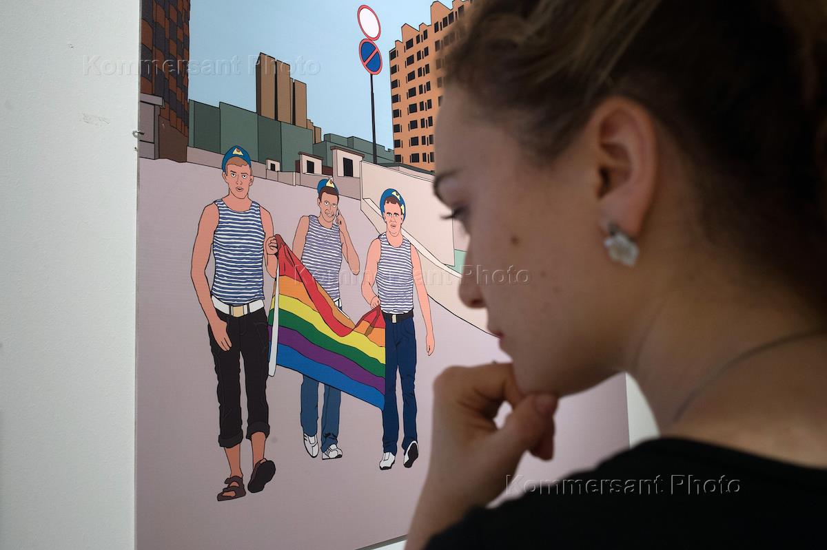 Посетительница на церемонии открытия дипломной выставки студентов Школы Родченко "Я видел молнию". Выставка прошла в кинотеатре "Ударник".