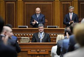 Инаугурация президента Украины Петра Порошенко прошла в Верховной Раде Украины. Президент Украины Петр Порошенко (справа) во время инаугурации.