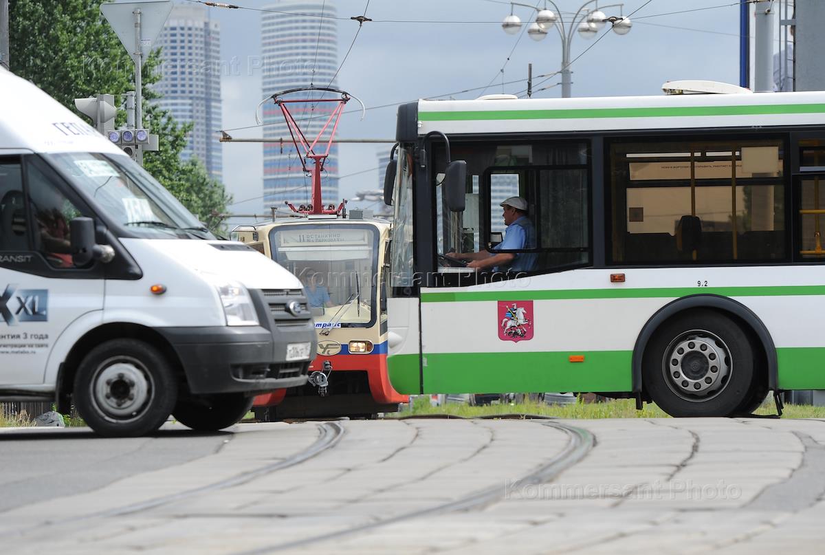 Виды Москвы. Дорожное движение на улицах города. Городской общественной транспорт.