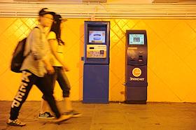 Жанровая фотография. Электронные терминалы оплаты в подземном пешеходном переходе.