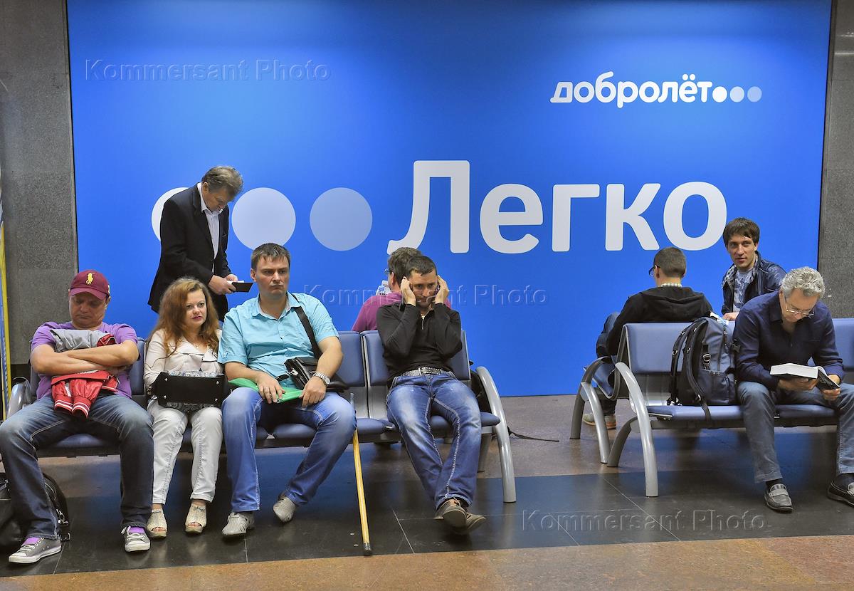 Пассажиры в ожидании первого рейса авиакомпании "Добролет" Москва - Симферополь в аэропорту Шереметьево.