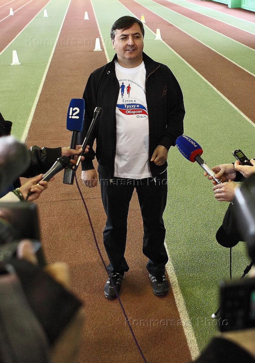 Первый заместитель губернатора Омской области Юрий Гамбург во время сдачи норм ГТО в спортивном комплексе "Сибирский нефтяник".