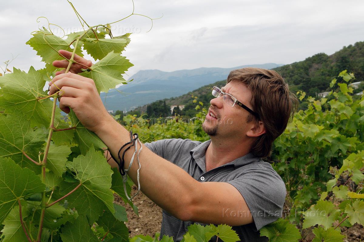 Vineyards in the village Geroyskoe. General Director of "Legend of the Crimea", grower Pavel Pestov.