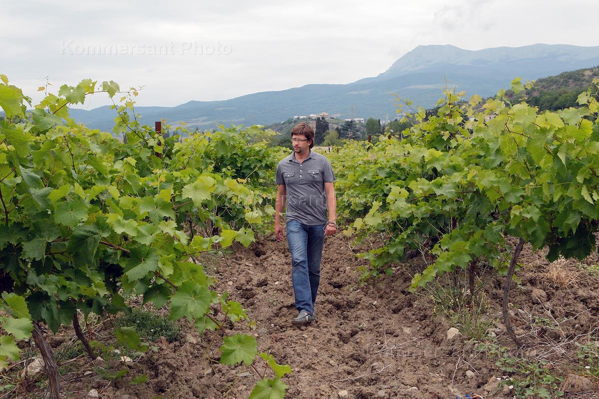 Vineyards in the village Geroyskoe. General Director of "Legend of the Crimea", grower Pavel Pestov.