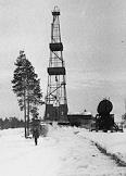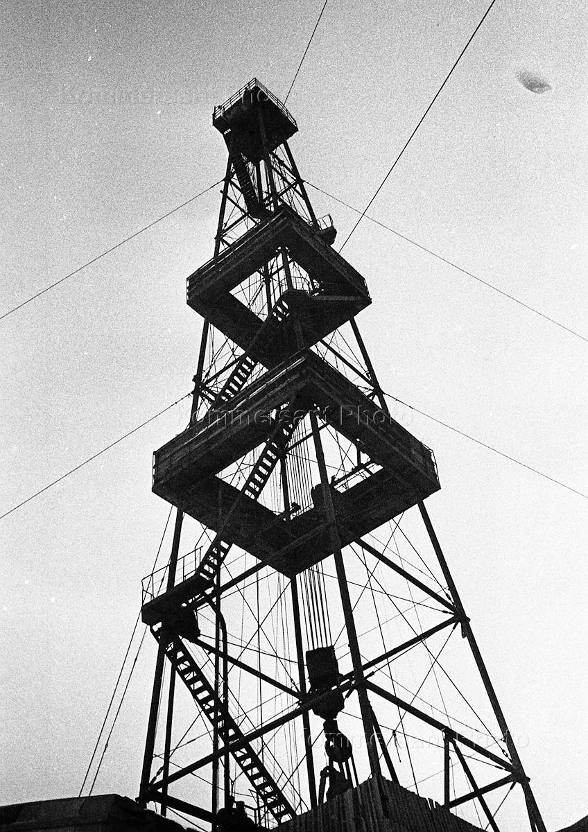 Нефтяное месторождение Пашня в поселке Нефтепечорск Сосногорского районаКоми АССР. Буровая вышка.