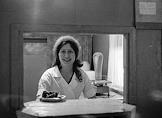 Нефтяное месторождение Пашня в поселке Нефтепечорск Сосногорского районаКоми АССР. Буфетчица подает через окно кухни еду в рабочей столовой на буровой.