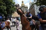 Конная милиция охраняет центральный вход в Киево-Печерскую лавру, где должен пройти крестный ход "За мир на Донбассе".