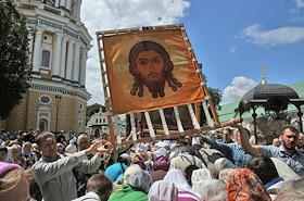 Верующие провели крестный ход "За мир на Донбассе" вокруг Свято-Успенского собора по территории Киево-Печерской лавры.