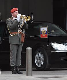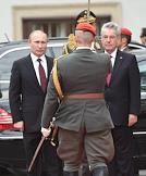 Рабочая поездка президента России Владимира Путина в Австрию. Церемония официальной встречи Федерального президента Австрийской Республики Хайнца Фишера и президента России Владимира Путина у дворца Хофбург в Вене.