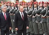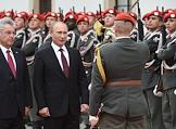 Рабочая поездка президента России Владимира Путина в Австрию. Президент России Владимира Путина перед начелом церемонии официальной встречи с федеральным президентом Австрийской Республики Хайнцем Фишером у дворца Хофбург.