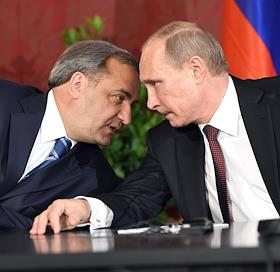 Рабочая поездка президента России Владимира Путина в Австрию. Министр России по делам гражданской обороны, чрезвычайным ситуациям и ликвидации последствий стихийных бедствий Владимир Пучков (слева) и президент России Владимир Путин (справа) на церемонии подписания соглашений во дворце Хофбург в Вене.