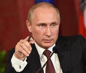 Рабочая поездка президента России Владимира Путина в Австрию. Президент России Владимир Путин на церемонии подписания соглашений во дворце Хофбург в Вене.