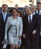 Рабочая поездка президента России Владимира Путина в Австрию. Министр МВД Австрии Йоханне Микль-Ляйтнер (вторая слева) и президент России Владимир Путин (справа) после завершения российско-австрийских переговоров.