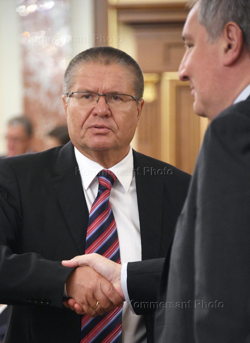 Министр экономического развития России Алексей Улюкаев (cлева) и заместитель председателя правительства России Дмитрий Рогозин (справа) на заседании правительства России.