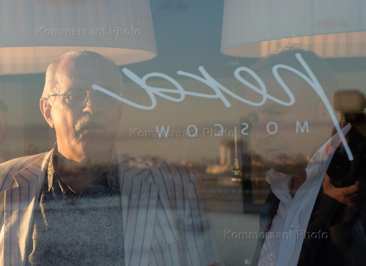 Председатель союза кинематографистов России, кинорежиссер Никита Михалков (слева) на Белой вечеринке и вручении премии "Аванс" журнала The Hollywood Reporter в рамках Московского международного кинофестиваля (ММКФ) в ресторане "Река".