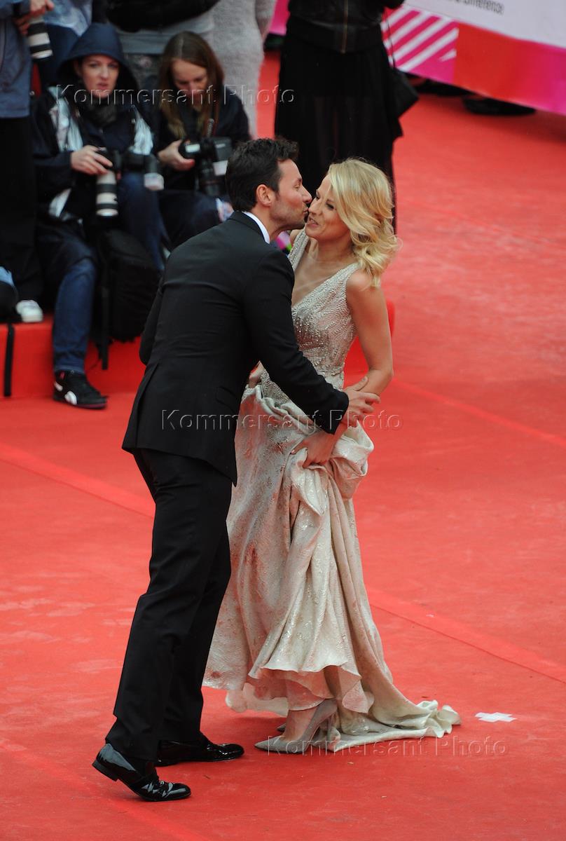 XXXVI Московский международный кинофестиваль (ММКФ). Актриса Анастасия Макеева (слева) и ей супруг актер и композитор Глеб Матвейчук (справа) на церемонии закрытия в кинотеатре "Россия".