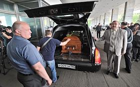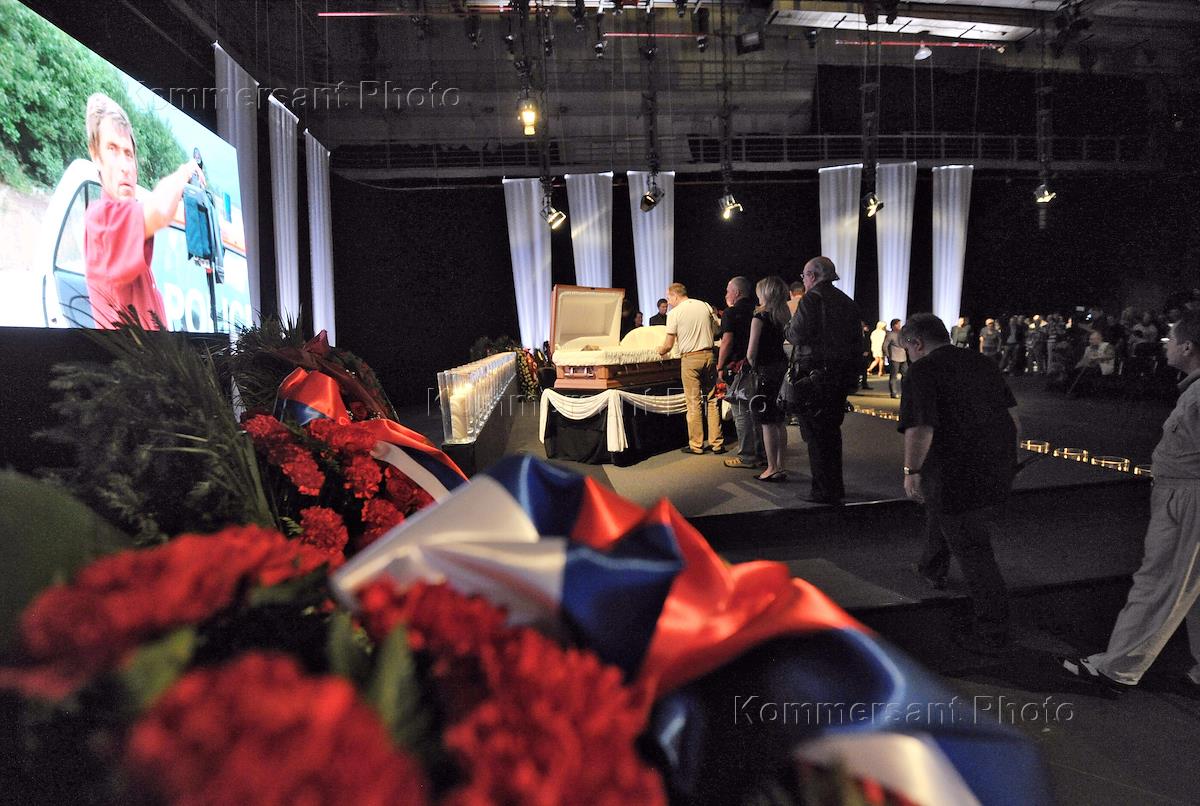 Церемония прощания с погибшим на Украине оператором Первого канала Анатолием Кляном в первой студии телецентра Останкино.