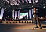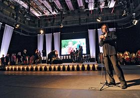 Генеральный директор Первого канала Константин Эрнст во время церемонии прощания с погибшим на Украине оператором Первого канала Анатолием Кляном в первой студии телецентра Останкино.