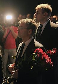 Прощание с погибшим оператором Первого канала Анатолием Кляном в телецентре "Останкино".